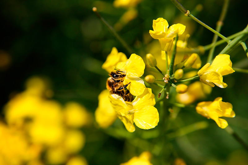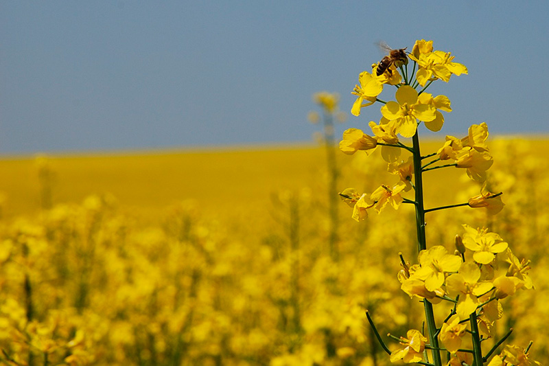 Raps ein wahres Schlaraffenland für Bienen und ergibt einen sehr hellen, oft fast weißen, mild-aromatischen Honig für Sie!